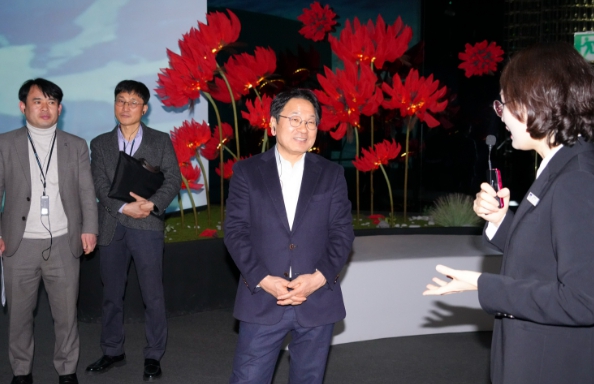 강 시장은 이날 ACC에서 정책소풍을 열고, 10만 명 이상의 관람객이 방문하는 등 흥행몰이에 성공한 융복합 미디어아트 콘텐츠인 ACC 기획 ‘디어 바바뇨냐’와 ‘이음 지음’ 전시를 관람했다.