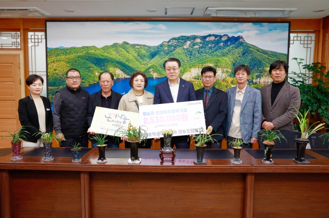 화순복숭아연합회는 복숭아 농사를 짓는 253명의 회원으로 구성된 단체로, 지역인재 양성에 각별한 관심을 가지고 2016년부터 (재)화순장학회에 매년 장학금을 기탁하고 있어 지역사랑 실천의 귀감이 되고 있다.