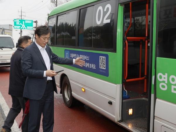 영암콜버스를 호출하고 탑승해 본 우승희 영암군수는 “삼호읍민을 포함한 영암군민들이 많이 이용해주면 좋겠다. 좋은 점을 더 좋게 하고, 불편한 점은 고쳐서 영암에 꼭 맞은 혁신 이동수단을 함께 만들어내자”고 당부했다.