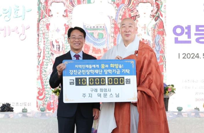 ![]() 화엄사 주지 덕문스님 강진군민장학재단에 장학금 1천만원 전달 |