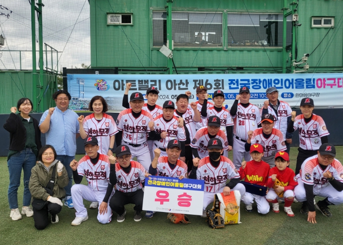 이번 대회는 지체장애인 4팀, 지적장애인 2팀이 참여해 토너먼트 형식으로 진행됐으며, 지적장애인 부문에 출전한 천하무적야구단은 결승에서 충북 괴산 토끼와거북이야구단을 꺾고 우승을 차지했다.