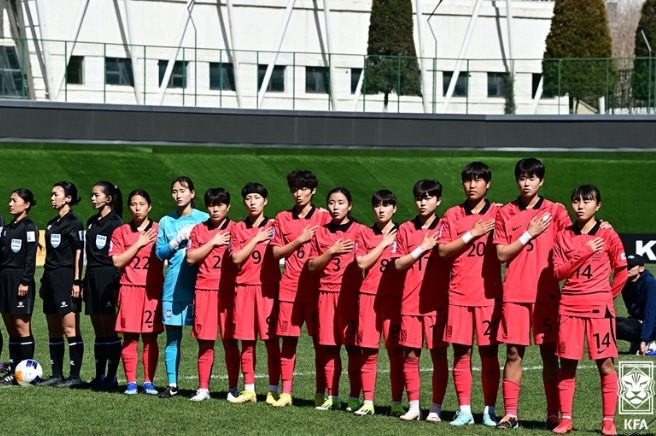 ![]() 지난 3월 AFC U-20 여자 아시안컵에 나선 여자 U-20 대표팀 선수들의 모습. |