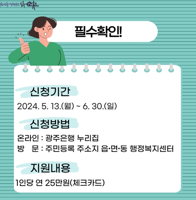 ![]() 순천시, 청년 문화복지카드 대상자 추가 모집 |