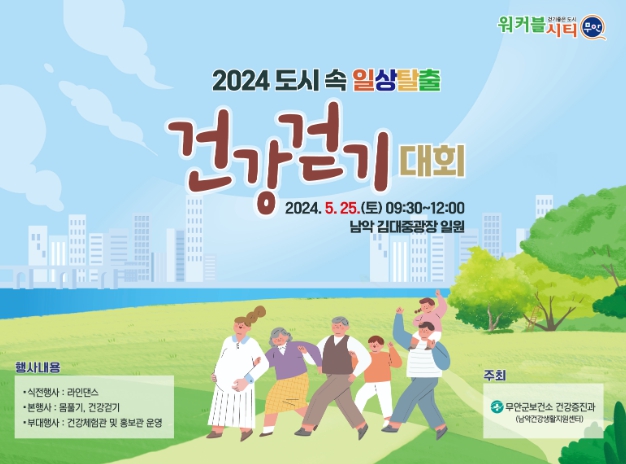 이번 행사는 ‘걷기좋은 도시! 워커블시티 무안’조성에 발맞춰 일상 속 걷기를 생활화하고 건강정보를 통해 주민들의 건강증진을 위해 마련됐고 무안군과 보건소에서 운영하는 걷기동아리 16개팀과 남악 건강지도자가 참가하며 주민 누구나 참여할 수 있다.
