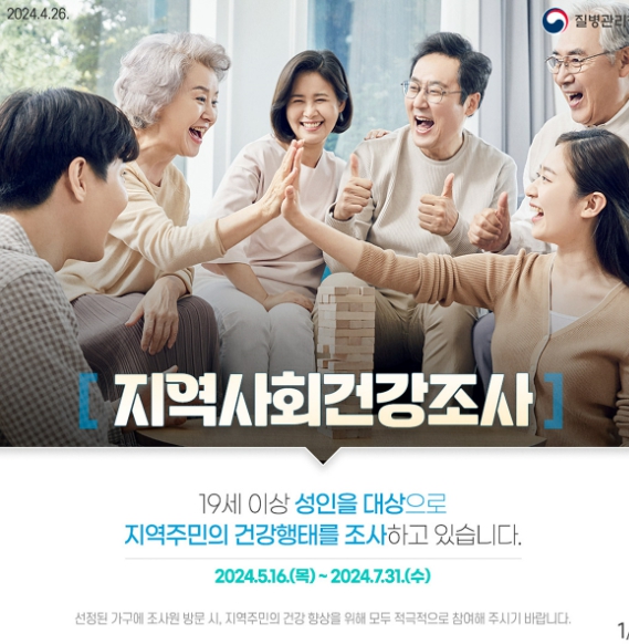 ![]() 여수시는 16일부터 7월 31일까지 2024년 ‘지역사회건강조사’를 실시한다. |