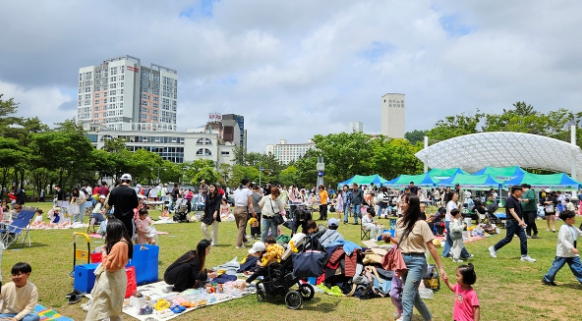 ![]() 지난 11일 올해 거북선공원 잔디광장에서 열린 ‘여수 벼룩시장’에서 가족단위 관람객이 행사를 즐기고 있다. |