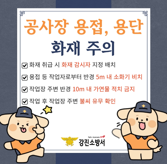 ![]() 강진소방서, 공사장 용접·용단 안전수칙 홍보 |