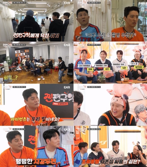 ‘모태 자이언츠’ 한해가 김태균의 순위 도발에도 “순위가 높아도 위협적이지는 않았어요”라며 맞받아쳐 스튜디오를 발칵 뒤집는가 하면, ‘야구 명문’ 경남고 출신의 성진이 “이글스가 출루를 했었나요?”라며 뻔뻔한 ‘맑눈광’ 기세로 이글스 찐팬들을 폭소케 하면서 단 한순간도 놓칠 수 없는 팽팽한 자강두천의 대결에 기대를 한껏 모은다.