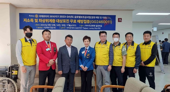 이번 활동은 국제로타리 3610지구 여수거북선 로타리클럽과 여수한산 로타리클럽의 글로벌 보조금 사업으로 여수전남병원, 원도심 4개동과 협약을 통해 50~64세 저소득층 주민 총 430명이 접종 지원을 받게 됐다.