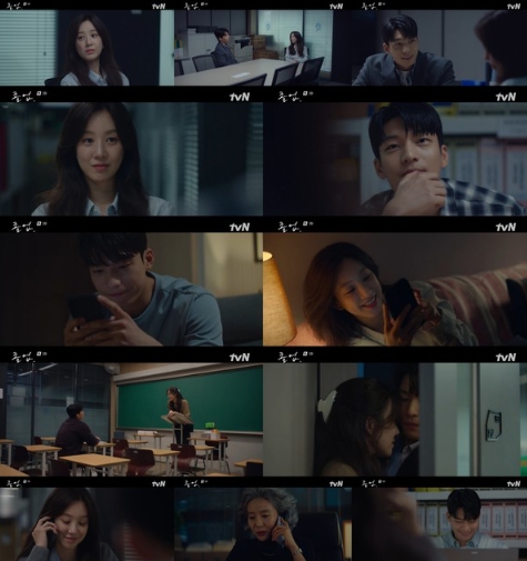 야근을 위해 돌아온 남청미(소주연 분)였다. 혼비백산한 두 사람은 재빨리 강의실 문 뒤로 숨었고, 금방이라도 얼굴이 닿을 듯한 거리에서 숨을 죽인 채 때아닌 숨바꼭질을 해야만 했다.