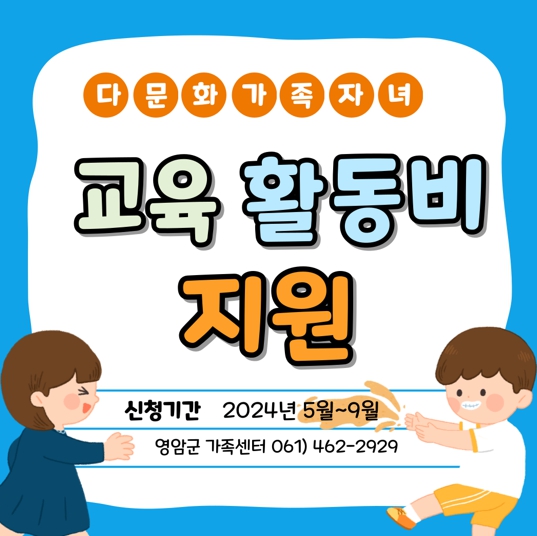 ![]() 영암군, 7~18세 다문화가정 자녀 교육활동비 신청하세요 |