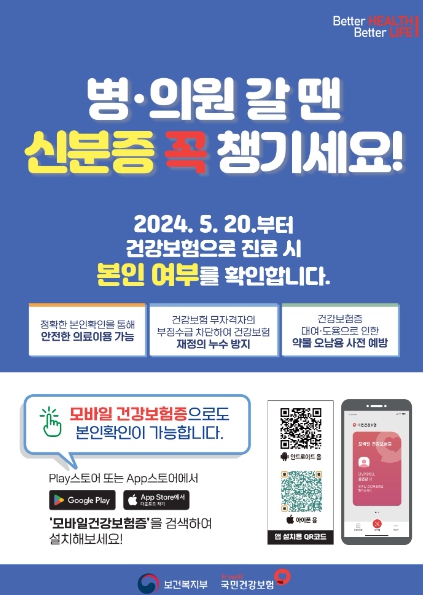 ‘요양기관 본인확인 강화제도’ 시행에 따라 병·의원과 보건소 진료 시 신분증 제시가 필수가 된 사실을 홍보하고 나선 것.