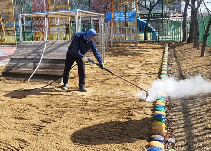 서구는 모래놀이터 7124㎡에 대해 전문장비를 활용해 고온스팀 소독을 진행할 예정이며, 소독작업은 유리․동물 배설물 등 이물질 제거, 모래 뒤집기, 전문장비를 활용한 고온 스팀 살균, 평탄 작업 순으로 이루어진다.
