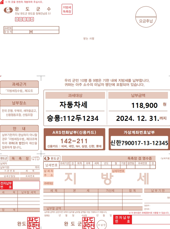 ![]() 완도군, 읽기 쉬운 ‘큰 글씨 지방세 고지서’ 제작 |