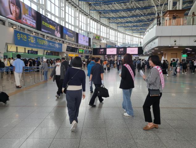 유동 인구와 관광객이 많은 서울역, 나주역 및 인근 거리에서 총무과 고향사랑팀은 강진 고향사랑기부제 홍보에 참여했다.