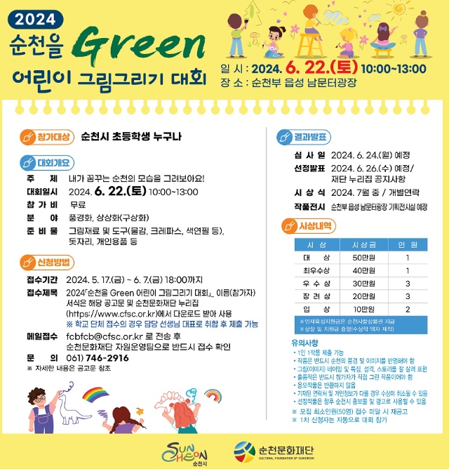 ![]() ‘2024 순천을 Green 어린이 그림그리기 대회’ 개최 |