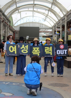 이날 캠페인은 광양여성상담센터를 포함한 (사)전국가정폭력상담소협의회 전남권역 8개 기관과 (사)광양YWCA, 행복을 여는 집(가정폭력 피해자 보호시설) 임직원 40여 명이 참여한 가운데 전남도립미술관을 시작으로 광양5일시장 일대에서 이뤄졌다.