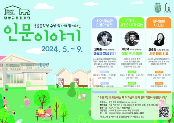 ![]() 재)담양군문화재단, 송순문학상 수상 작가 3인 3색의 인문학 프로그램 참가자 모집 |
