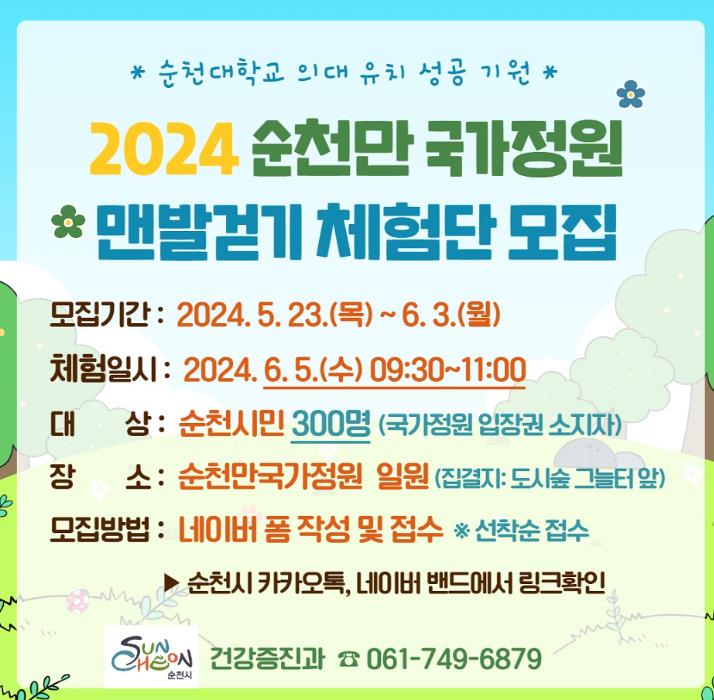 ![]() 순천시, 순천만국가정원 맨발걷기길 체험 행사 참여자 모집 |
