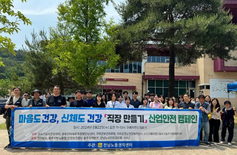 이날 합동 캠페인은 전남노동권익센터가 주관하고 구례군, 전라남도, 광주지방노동청, 산업안전보건공단 광주지역본부, 전남노사민정협의회가 후원했다.