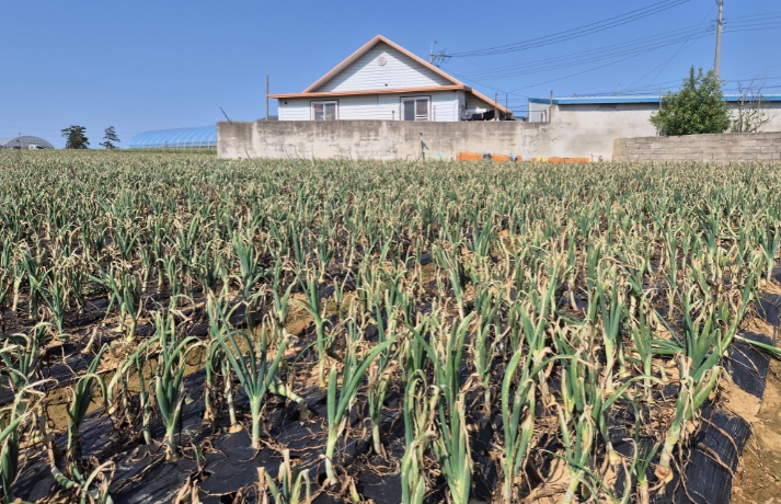 전남도에 따르면 지난 1~4월 잦은 강우(평년 대비 76% 증가)와 고온(평년대비 19% 상승), 일조량 부족(평년 대비 53% 감소) 등으로 약 1천580ha(잠정)에서 성장 지연(구비대 불량)과 잎마름 증상 등 확산으로 피해가 발생됐다. 이는 전남 양파 면적 6천862ha의 23%에 달하는 규모다.