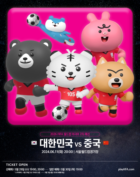 29일에는 PlayKFA의 VIP 회원들을 대상으로 한 선예매와 스카이박스 예매가 시작된다. VIP 회원중 ‘더 레드’ 등급 회원은 29일 오후 7시부터, ‘블랙’ 등급 회원은 오후 8시부터 구입할 수 있다. 선예매는 1인당 2매씩 구매가 가능하고, 추후 일반 예매에서 추가로 2장을 더 살 수 있다.
