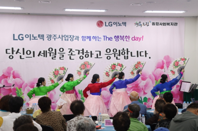 거동이 어려워 생신 잔치에 참여하지 못한 어르신에 대해선 LG이노텍 광주사업장 임직원과 이현숙 행복드림종합사회복지관 관장은 직접 세대를 방문해 축하 인사와 선물을 전달했다.