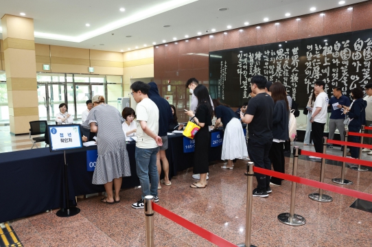![]() 추첨식에 앞서 하니움 적벽실 앞 로비에서 접수를 진행하고 있는 모습. |
