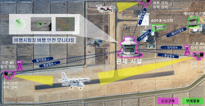 이번 사업은 2028년까지 5년간 국비 100억 원을 포함한 총사업비 143억 원이 투입돼 국가종합비행성능시험장 일원에 미래비행체와 항공기, 드론을 동시에 모니터링 할 수 있는 통합 비행 모니터링 타워, 충돌 회피평가 시설 장비 등이 구축된다.