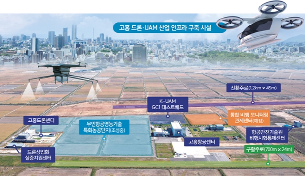 고흥읍에 위치한 국가종합비행성능시험장에는 국방 연구기관과 많은 국내 항공 관련 기업이 개발 중인 소형 무인기·첨단항공교통(AAM) 등 기체의 비행시험과 실증을 위해 찾고 있다.
