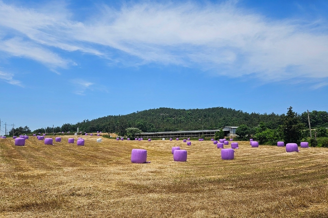 현재 31개소 조사료 경영체를 중심으로 1,700ha에 달하는 면적에서 한창 동계 조사료 수확이 이루어지는 가운데 6만여 개의 보라색 공룡알이 들판을 뒤덮고 있다.