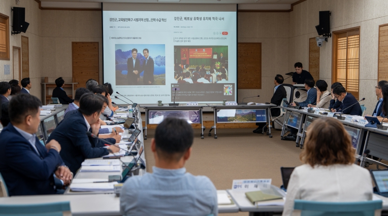 ![]() 강진군청 대회의실에서 개최된 챗GPT-4o 외국인 민원 서비스 시연회를 하고 있다. |