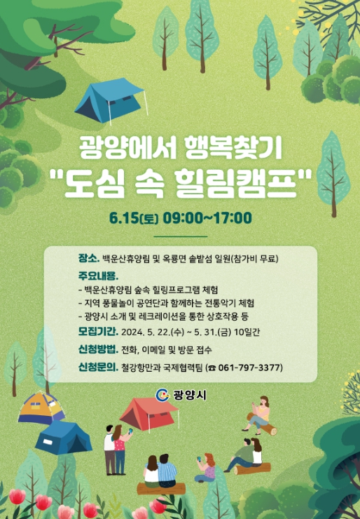 ![]() ‘광양에서 행복 찾기! 외국인 숲속 힐링 체험행사’ 참가자 모집 |