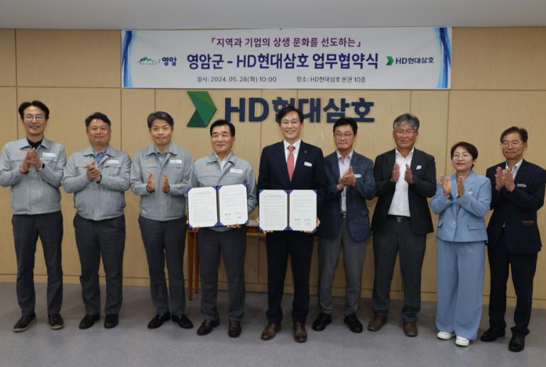 우승희 영암군수와 신현대 HD현대삼호 대표는, 이번 협약을 마중물 삼아 지역사회와 기업이 상생하는 다양한 접촉면을 만들어 상호발전의 계기로 삼자고 한목소리를 냈다.