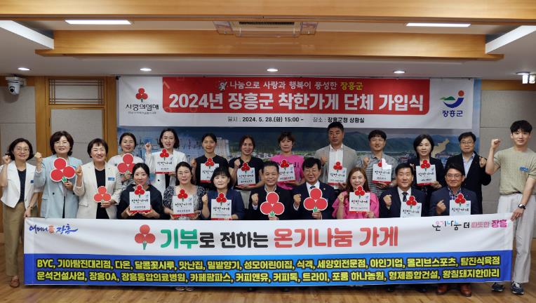 이날 가입한 착한가게는 BYC 장흥점, 기아탐진대리점, 다온, 달콤꽃시루, 맛난집, 밀밭향기, 성모어린이집, 식객, 세양회전문점, 아인기업, 올리브스포츠, 탐진식육점, 운석건설사업, 장흥OA, 장흥통합의료병원, 카페팜파스, 커피앤유, 커피톡, 트라이, 포룸, 하나농원, 형제종합건설, 황칠돼지한마리 등 23개소다.