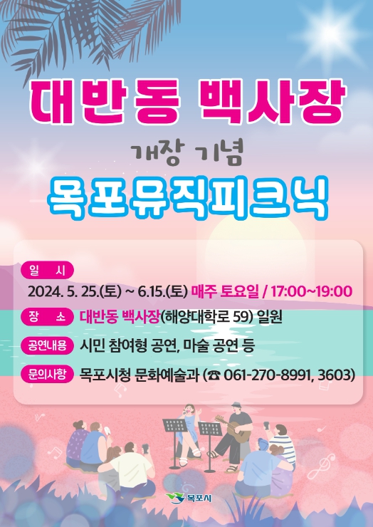 한편, 목포뮤직피크닉은 오는 6월 1일과 8일, 15일 대반동 백사장에서 함께할 수 있다.