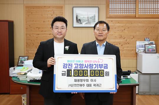 곽귀근 이사는 “고향사랑기부제를 통해 강진 발전에 직접 힘을 보태어 뿌듯하다”며, “고향에 대한 애틋한 마음을 전달할 수 있어서 매우 기쁘고, 앞으로도 전국에 있는 출향인들의 자발적인 기부가 지속되어 강진의 경제와 복지가 증진되길 바란다”고 말했다.