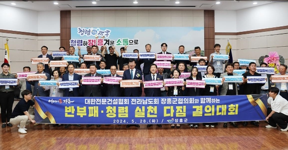 결의대회에서는 불법행위 근절, 부정·부패 척결, 반부패·청렴의지 확립을 위해 장흥군과 장흥군전문건설협회가 공동으로 노력하기로 했다.