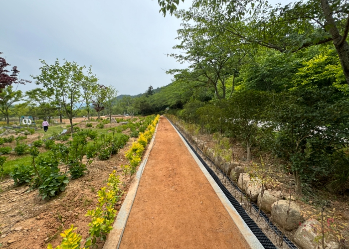 이 사업은 지난 3월 착수해, 수목이식, 마사토 및 황토 다짐작업, 경계석 설치 등을 진행해, 안전하고 편하게 걸을 수 있도록 평탄화 작업 및 노면 정비와 안내판 설치까지 약 3달간의 공사를 마치고 준공했다.