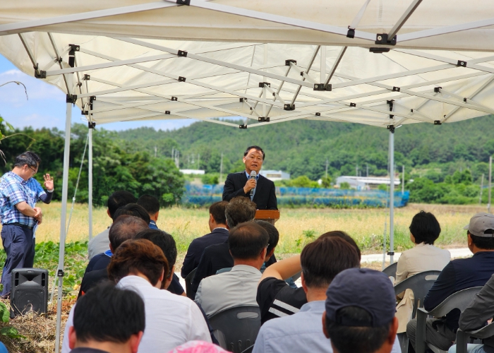 강진군(군수 강진원)과 농촌진흥청 국립식량과학원이 함께 개최한 이번 평가회에는 축산 관계 기관, 한우 관련 농업인 등 40여 명이 참석한 가운데 ‘당찬’ 밀 품종 특성 소개 및 경제성 분석 결과 발표, 재배 사례 및 생육 포장 설명, 종합 토의 순으로 진행됐다.