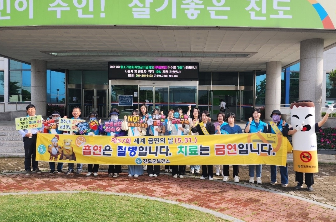 지역사회의 흡연 예방 문화조성과 금연 의식 개선을 위해 진도군청사 입구에서부터 진도읍사무소 사거리까지 군청 직원들과 주민들을 대상으로 가두행진을 하며 금연을 강조했다.