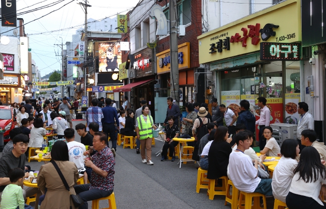 ![]() 목야청청 첫 행사가 열린 30일, 강진읍 일원에서 주민들과 관광객들이 라이브 공연과 함께 즐거운 한때를 보내고 있다. |