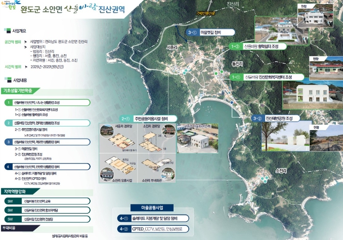 지난 5월 31일 발표된 해양수산부의 '2025년 어촌 분야 일반농산어촌 개발사업' 공모 사업 선정 결과, ‘행복한 삶터 조성 사업’ 부문에 완도군의 ‘산들바람 진산권역(소안면 진산리)’이 선정됐다.
