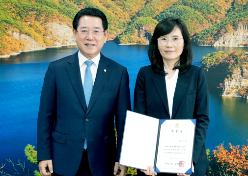 ![]() 김영록 전라남도지사가 3일 도청 접견실에서 김옥경 신임 농업박물관장에게 임명장을 수여하고 기념촬영을 하고 있다. |