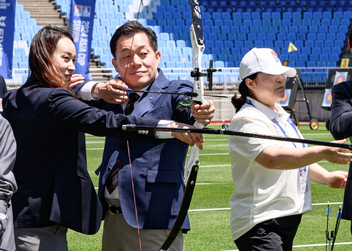 이재준 수원시장은 3일 열린 개막식에서 환영사를 하고, 시궁(始弓)했다. 개회식에는 한규형 아시아양궁연맹 사무총장, 백종대 수원시양궁협회장, 김기정 수원시의회 의장 등이 참석했다.