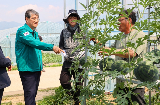 김순호 군수는 지난 3일 영농 2년 차인 청년 농업인 농장을 둘러보고, 수박이 고소득 미래작물로 더욱 성장할 수 있도록 수직 재배 단지를 적극적으로 확대해 나가겠다고 밝혔다.