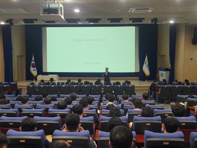영암군이 3일 군청에서 공직자 300여 명이 참석한 가운데 김승수 전 전주시장을 초청해 ‘혁신은 어디로부터 오는가’ 주제 특강을 진행했다.