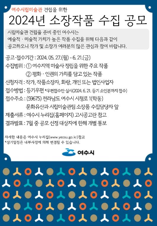 ![]() 여수시, 시립미술관 건립 위한 소장 작품 수집 공모 |