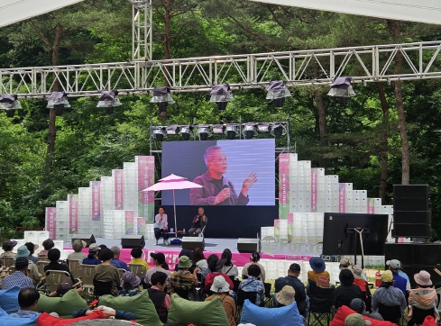 이날 행사는 무등산 인문축제 프로그램의 하나인 ‘인문토크’ 형태로 진행됐다. 김용택 시인은 ‘자연이 말하는 것을 받아쓰다’라는 주제로 자연과 문학의 연결고리에 대해 지정남 사회자와 대담 형식으로 강연을 이끌어 나갔다.