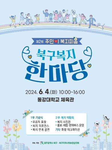 올해로 2회째를 맞은 이번 행사는 북구지역사회보장협의체 주관으로 열리며 북구 마을 복지계획의 공식 명칭인 ‘주민이 복지 피움’을 주제로 ▲기념식 ▲점심 나눔 ▲종사자 소통·화합의 장이 오전 10시부터 오후 4시까지 차례대로 펼쳐진다.